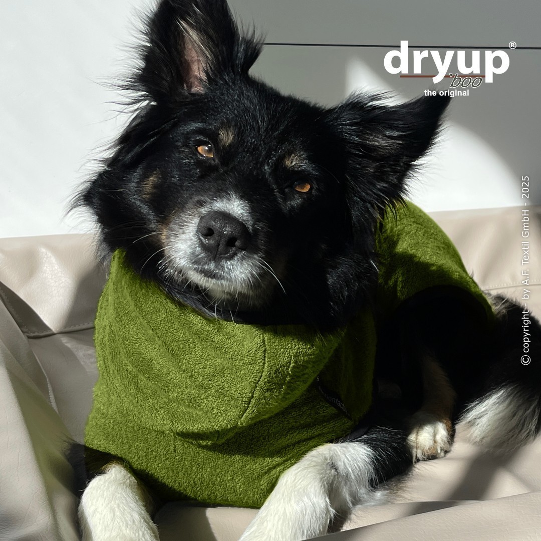 Fazit: Das DRYUP® CAPE ist die ideale Lösung, um Ihren Hund nach Nässe schnell zu trocknen und gleichzeitig Ihr Zuhause sauber zu halten.
