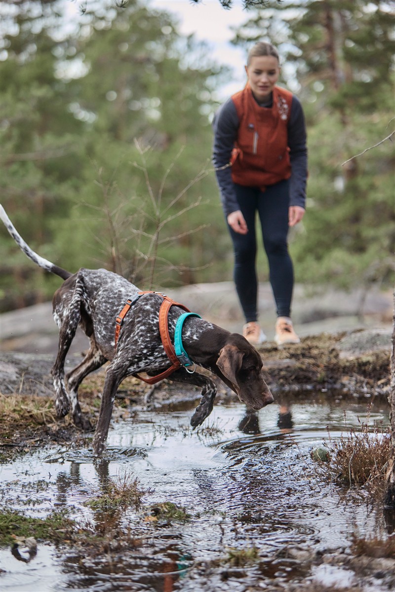 Dank des verstellbaren Brustgurts lässt sich das Geschirr optimal an die Körperform deines Hundes anpassen. Das wetterfeste Obermaterial in Kombination mit der schnelltrocknenden Neoprenpolsterung bietet hohen Tragekomfort – auch bei Regen, Nässe oder intensiver Aktivität.