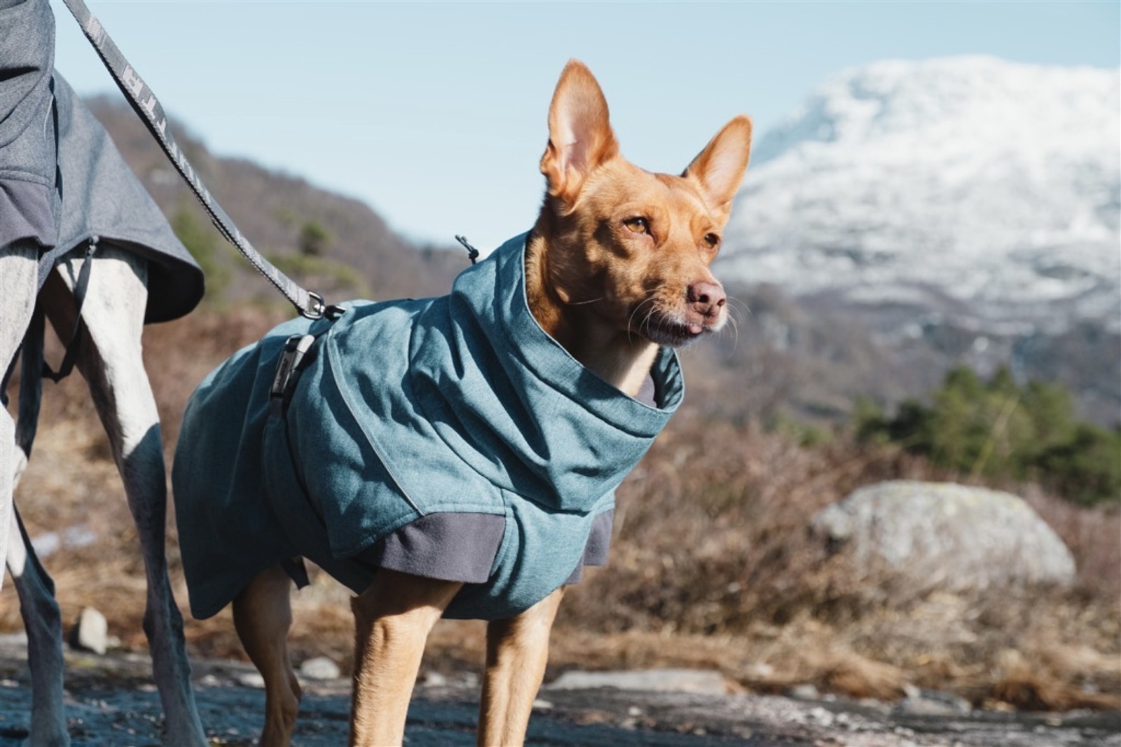 Ab Größe 30 cm ist eine verschließbare Öffnung für ein Hundegeschirr integriert. In den Größen 25–28 cm verfügt der Mantel über ein integriertes Geschirr. Ein Schneefang am Kragen verhindert das Eindringen von Kälte und Schnee. Reflektierende Bordierungen erhöhen die Sichtbarkeit bei schlechten Lichtverhältnissen.