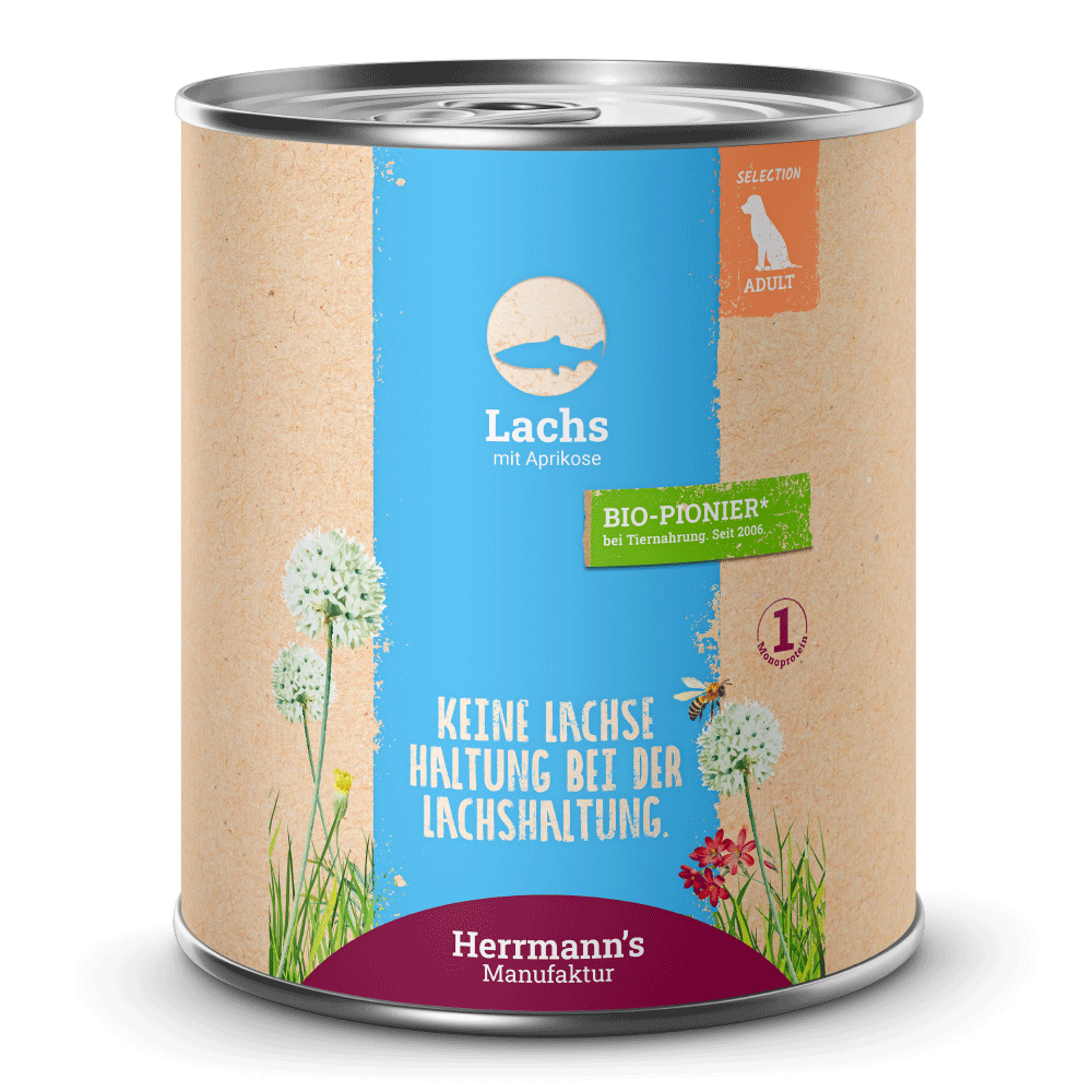 Die Selection Adult von Herrmann's Manufaktur bietet vollwertige Alleinfutter-Menüs für ausgewachsene Hunde – mit je einer einzigen tierischen Proteinquelle, natürlichen Zutaten aus kontrolliert biologischer Erzeugung und transparenter Deklaration. HM-NF03 vereint zwei Sorten mit besonders hochwertigen Proteinquellen aus freier Natur: Hirsch aus jagdlichem Ursprung und Lachs aus nachhaltigem Fischfang.