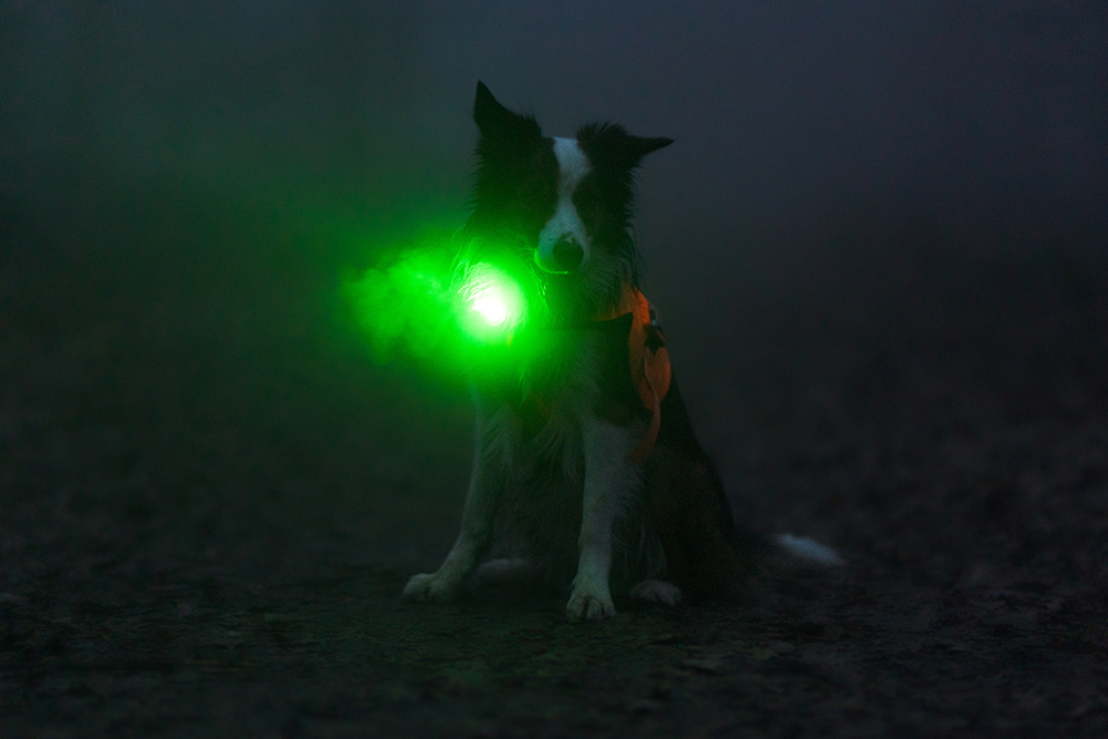 IPX8 ist die höchste Wasserschutzklasse, die es gibt. Die Orbiloc wurde bei 11 Bar Wasserdruck – entsprechend 100 Metern Wassertiefe – für eine Stunde getestet. Das bedeutet: Ob dein Hund durch Pfützen stapft, im See schwimmt, durch Schnee wühlt oder bei Dauerregen läuft – die Leuchte macht das problemlos mit. Nach Kontakt mit Salzwasser empfehlen wir, die Leuchte unter klarem Leitungswasser abzuspülen und dabei den Mode Selector Ring ein paarmal zu drehen, um Sand und Salzkristalle zu lösen.