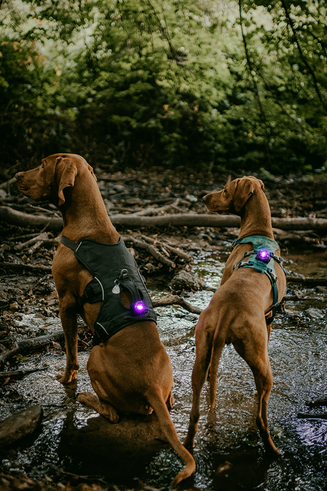 Produktinformationen "Orbiloc Dog Dual Safety Light – LED-Sicherheitslicht für Hunde, 5 km sichtbar – Lila"