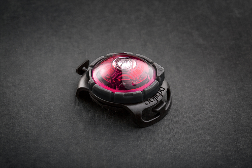 Betrieben wird die Leuchte mit zwei CR2032-Knopfzellen (als Orbiloc-Batteriepack verbaut): Im Dauerlichtmodus bis zu 100 Stunden, im Blinkmodus bis zu 250 Stunden. Die Bedienung ist denkbar einfach: Mode Selector Ring nach links oder rechts drehen – Aus, Blinken, Dauerlicht. Funktioniert auch mit Handschuhen, auch bei Regen, auch im Dunkeln.