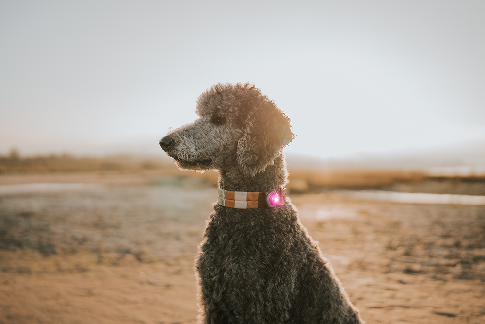 Das besondere am Orbiloc ist das omnidirektionale Linsendesign: Das Licht strahlt in einem Bogen von 270° ab – nicht nur nach hinten, sondern auch seitlich und frontal. Das bedeutet: Autofahrer, Radfahrer, Jogger und Reiter können deinen Hund wahrnehmen, egal aus welcher Richtung sie sich nähern. Und das auf einer Distanz von bis zu 5 km. In ländlichen Gebieten, wo schnelle Fahrzeuge und lange Bremswege die Regel sind, kann das den Unterschied machen. In der Stadt sorgt das helle Licht dafür, dass sich der Hund auch im Lichtergewirr der Straßenbeleuchtung abhebt.
