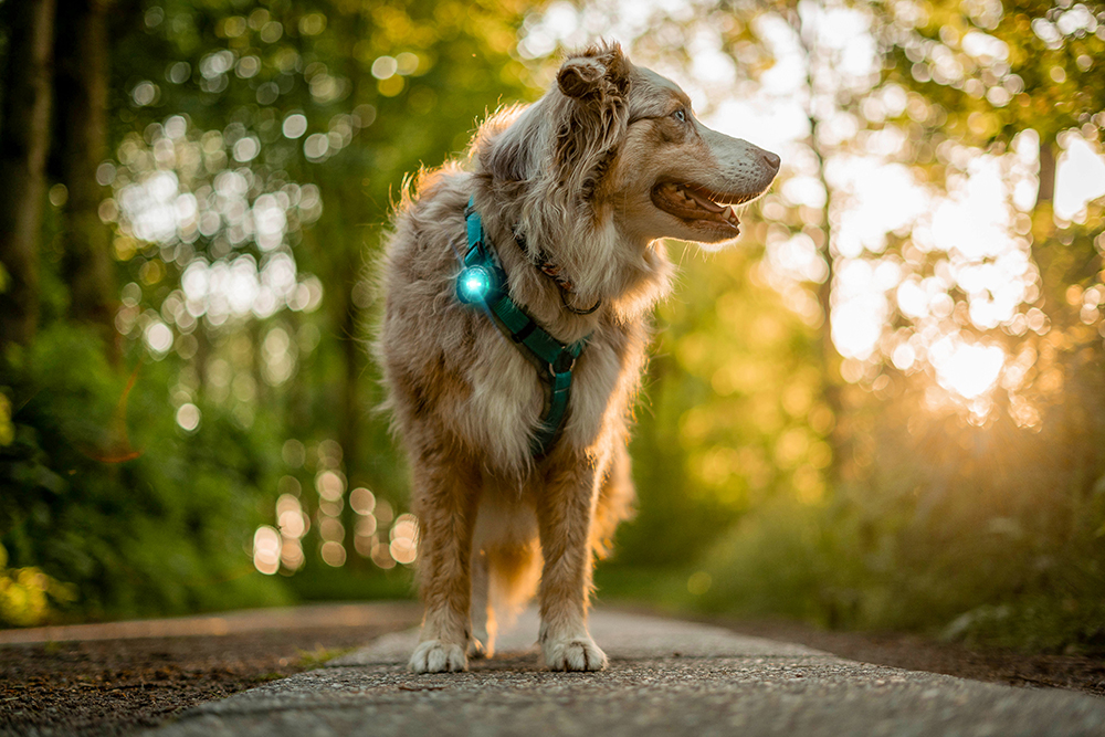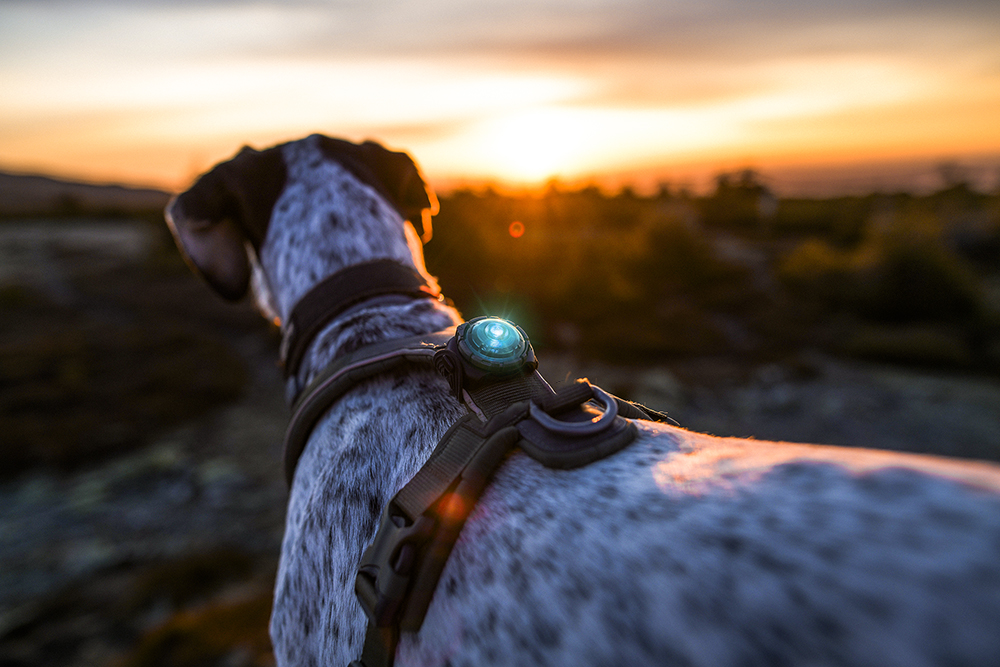 Das besondere am Orbiloc ist das omnidirektionale Linsendesign: Das Licht strahlt in einem Bogen von 270° ab – nicht nur nach hinten, sondern auch seitlich und frontal. Das bedeutet: Autofahrer, Radfahrer, Jogger und Reiter können deinen Hund wahrnehmen, egal aus welcher Richtung sie sich nähern. Und das auf einer Distanz von bis zu 5 km. In ländlichen Gebieten, wo schnelle Fahrzeuge und lange Bremswege die Regel sind, kann das den Unterschied machen. In der Stadt sorgt das helle Licht dafür, dass sich der Hund auch im Lichtergewirr der Straßenbeleuchtung abhebt.